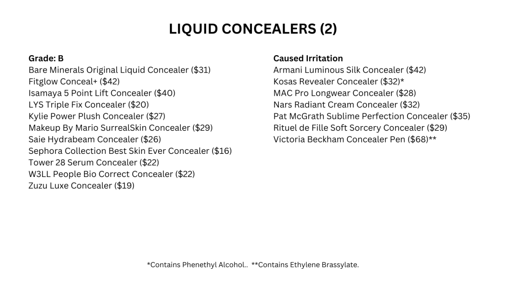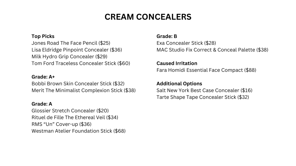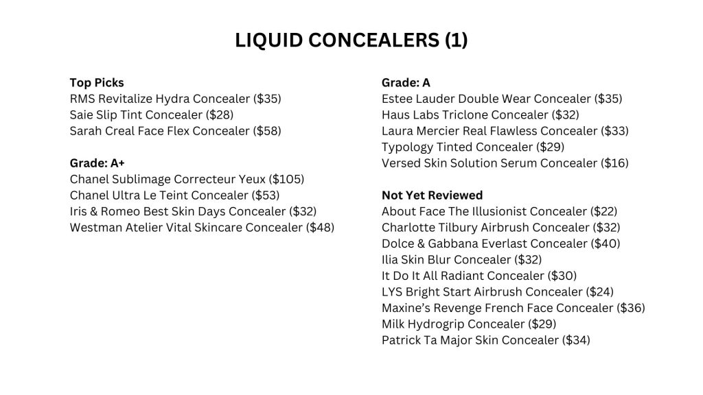 My current Grade Sheets for concealers and correctors (as of 3/5/26) are listed on this page.
