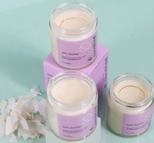 The description of this product reads, “Our skin butter utilizes coconut oil, shea butter, beeswax, and lavender (and nothing else!) to deeply hydrate dry or damaged skin. use daily all over body for nourished and moisturized skin. Improves skin hydration levels. Protects skin from daily stressors. Provides long lasting moisture.”